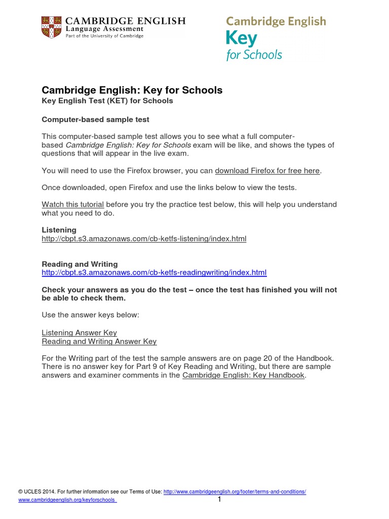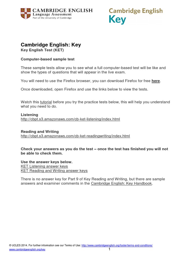 Cambridge English Key Key English Test Ket Computer Based Sample Test